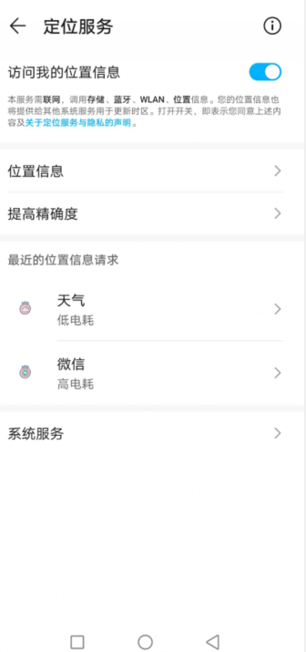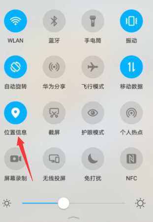 以华为手机为例,在华为手机主屏上往下拖动,然后找到并点击【位置信息】按钮,即可打开手机的GPS,长按此按钮,即可进入GPS设置界面。