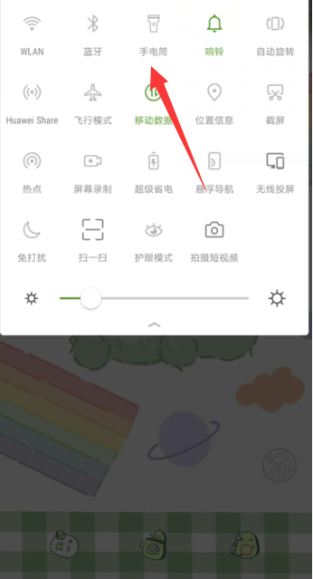 以华为Nova5为例,手电筒快捷键是从手机屏幕顶端下拉,打出控制中心,找到并点亮【手电筒】图标即可打开手电筒,再次点击即可关闭手电筒。
