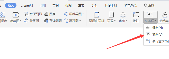 1、在文档里面点击【插入】,选择【文本框】里的【竖向】。