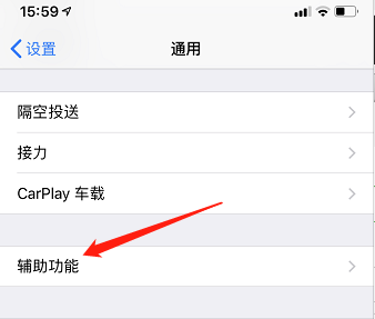 2、选择通用设置中的“辅助功能”选项;