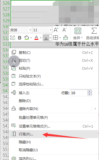 2、此时弹出的框里就有【行高】选项,点击它。