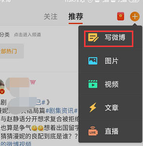 1、进入微博APP,点击加号,进入写微博界面。