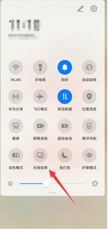 华为手机的无线投屏在手机顶部下拉通知栏就能的快捷开关中,将