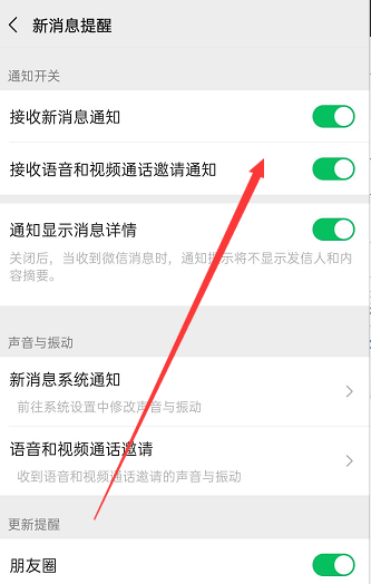 2、点击新消息提醒,进入这个界面,将接收语音和视频通话邀请通知开启即可。