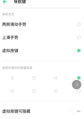 3、后点击选择虚拟按键导航,再选择一个喜欢的按键布局即可。