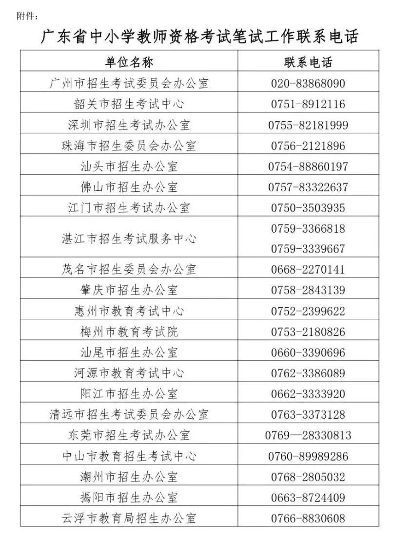 【广东省中小学教师资格考试笔试工作联系电话】