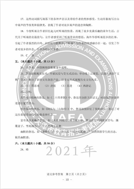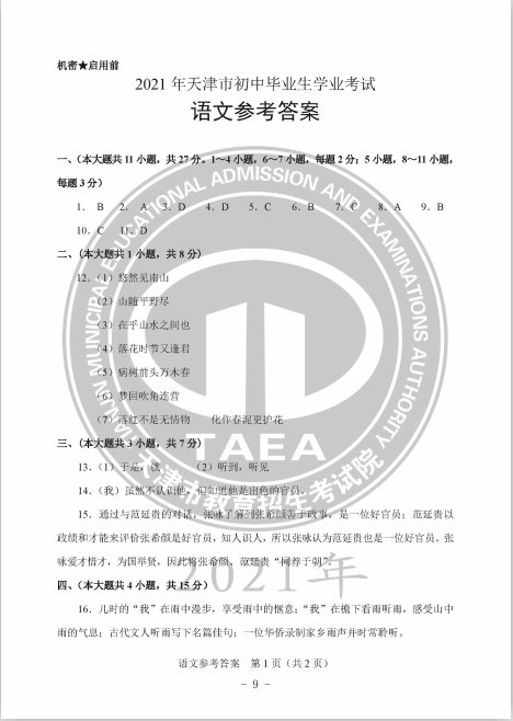 》》》语文科目考试答案