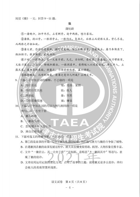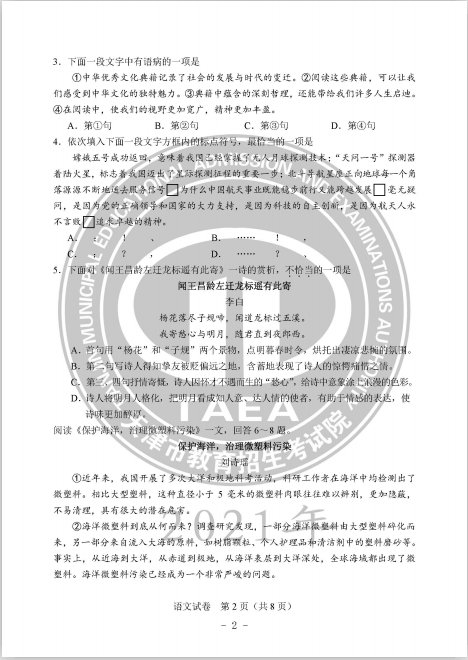 》》》语文科目试卷