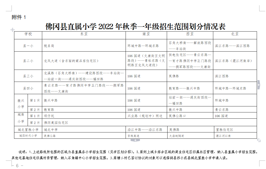 附件:1.佛冈县直属小学2022年秋季一年级招生范围划分情况表