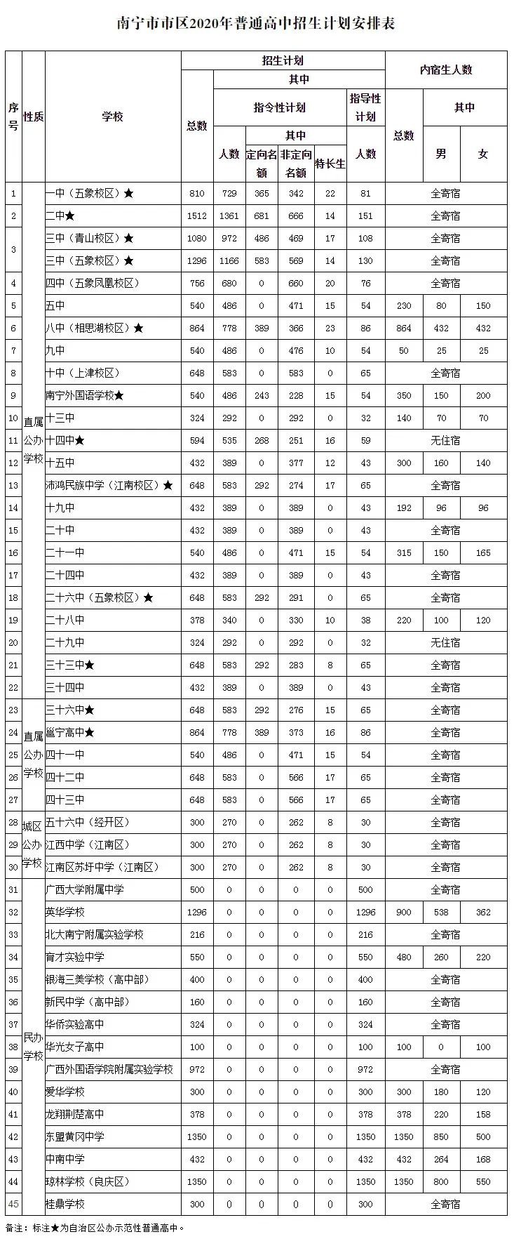 近日,南宁中考招生信息网发布《南宁市市区2020年普通高中招生计划安排表》,公布了南宁市区各学校的具体招生计划。