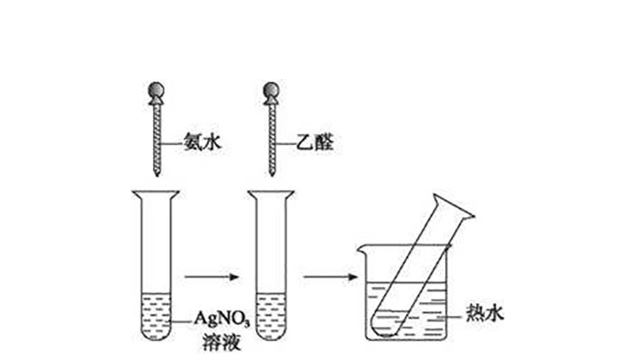 甲醛和银氨溶液的反应方程式为: HCHO+2Ag(NH3)2OH→HCOONH4+2Ag↓+3NH3+H2O(水浴加热条件下)。甲醛和银氨溶液的反应被称为银镜反应,在该反应中,银的化合物被还原为金属银,反应时可以观察到在实验所用的容器的内壁上附着一层光亮如镜的金属银。