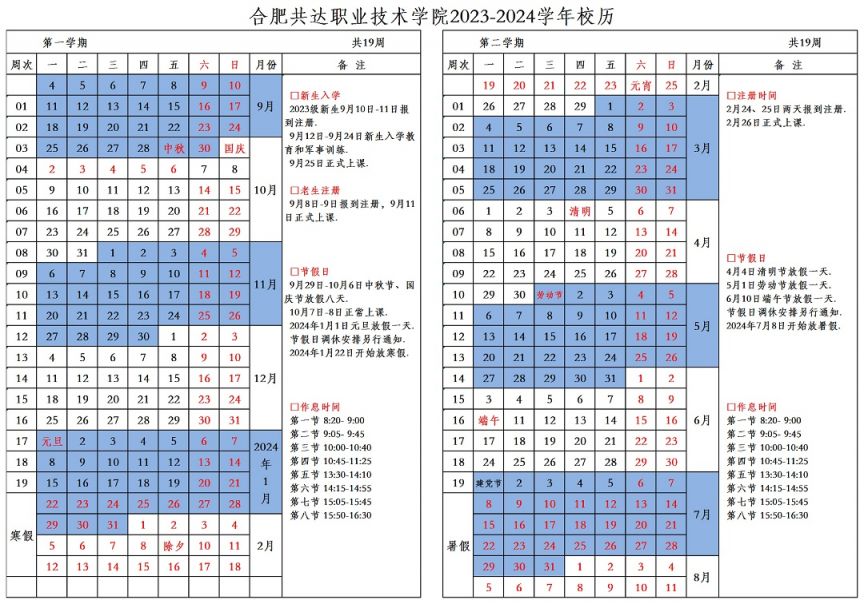 合肥共达职业技术学院2024年寒假放假时间+开学时间