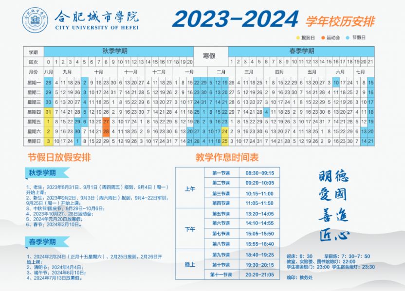 2023-2024合肥经济学院校历 合肥经济学院暑假放假时间