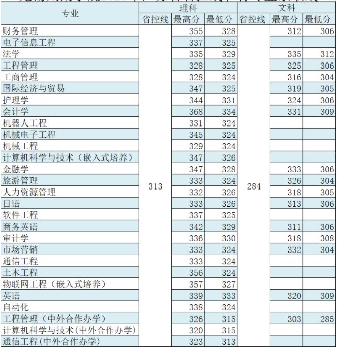 三、2019年省内录取分数线