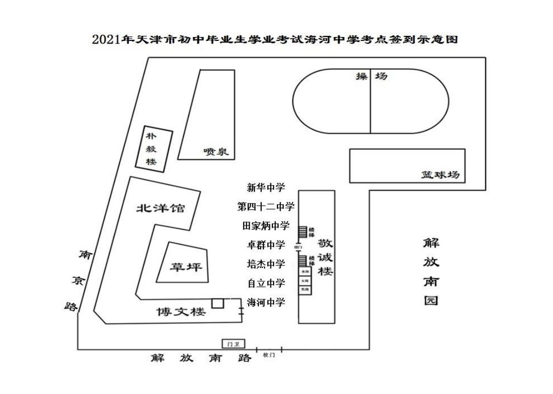 2021年天津市中考河西区共设置9个考点,分别是新华中学、实验中学、四中、四十二中、海河中学、四十一中、北师大天津附中、梅江中学和微山路中学。小编为大家整理了这九个考点的签到平面示意图和教学楼考场分布图。