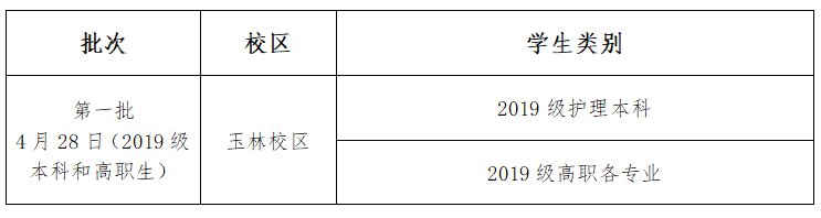 (二)玉林校区以我校名义招生的本科及高职学生返校返岗安排表