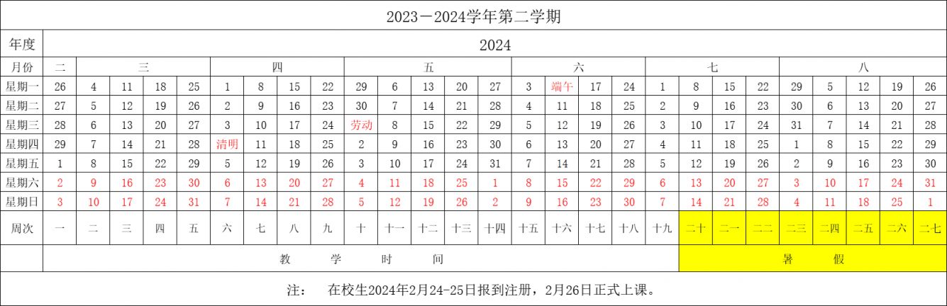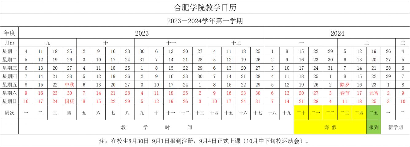 2023-2024合肥经济学院校历(寒假+暑假)