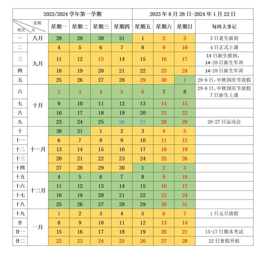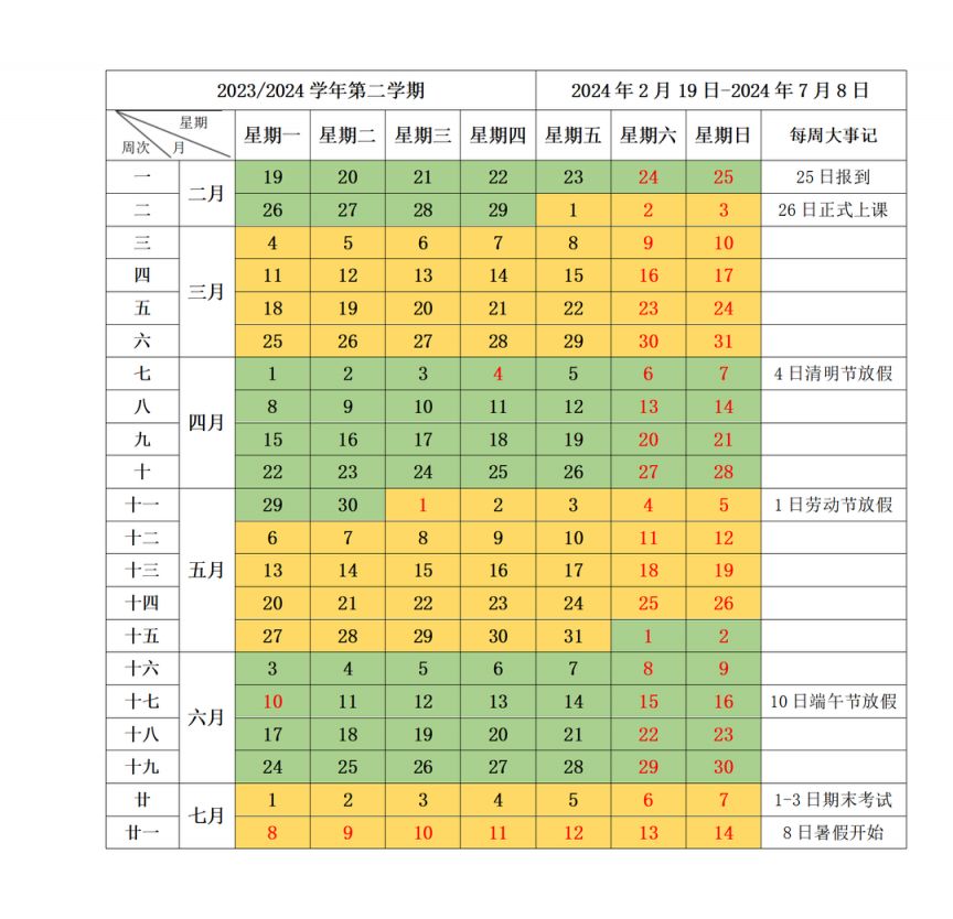 2024年1月22日开始放寒假,2024年2月25日学生报到、2月26日正式上课!