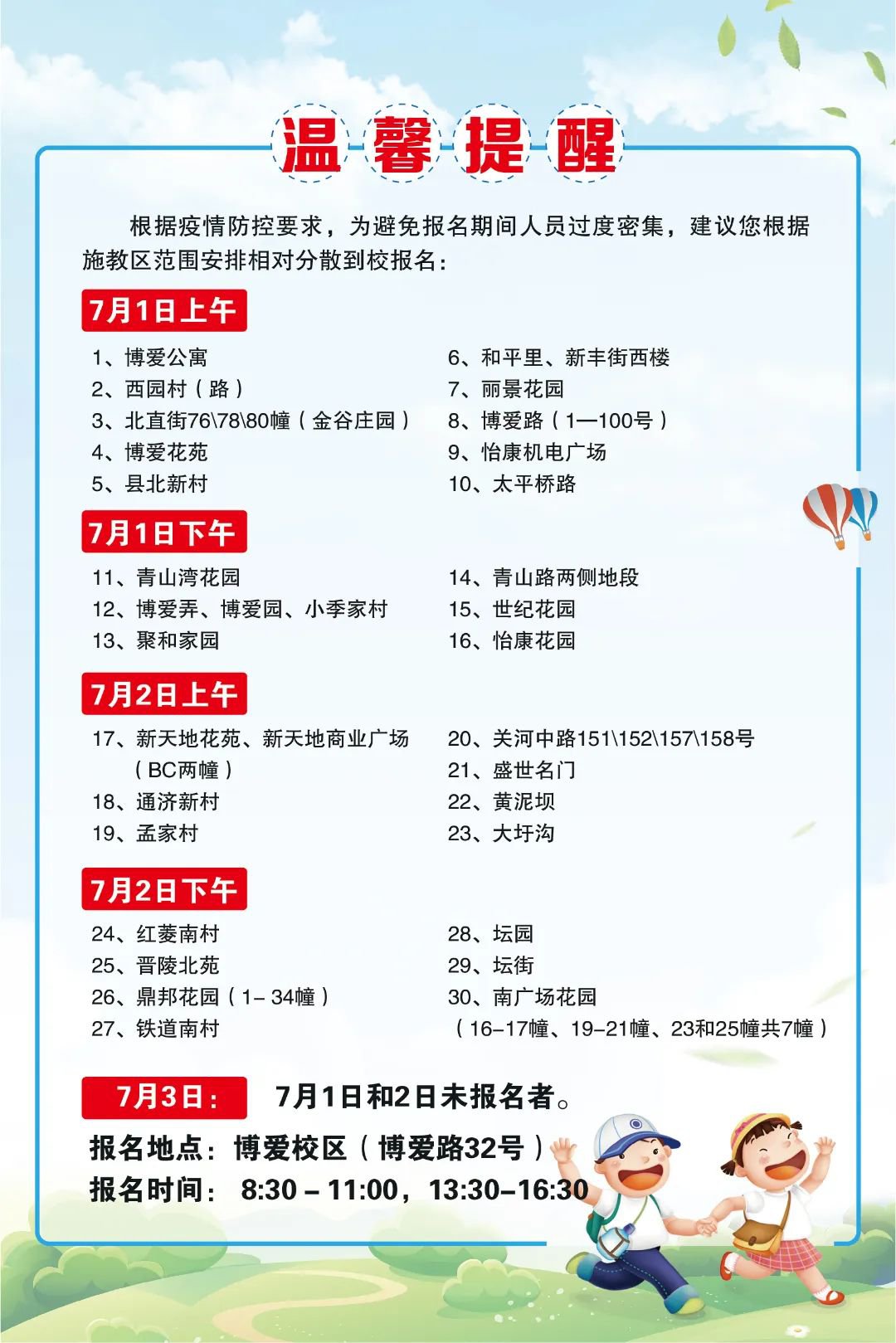 7月30日前,我校公布符合条件的新生名单并发放入学通知书。