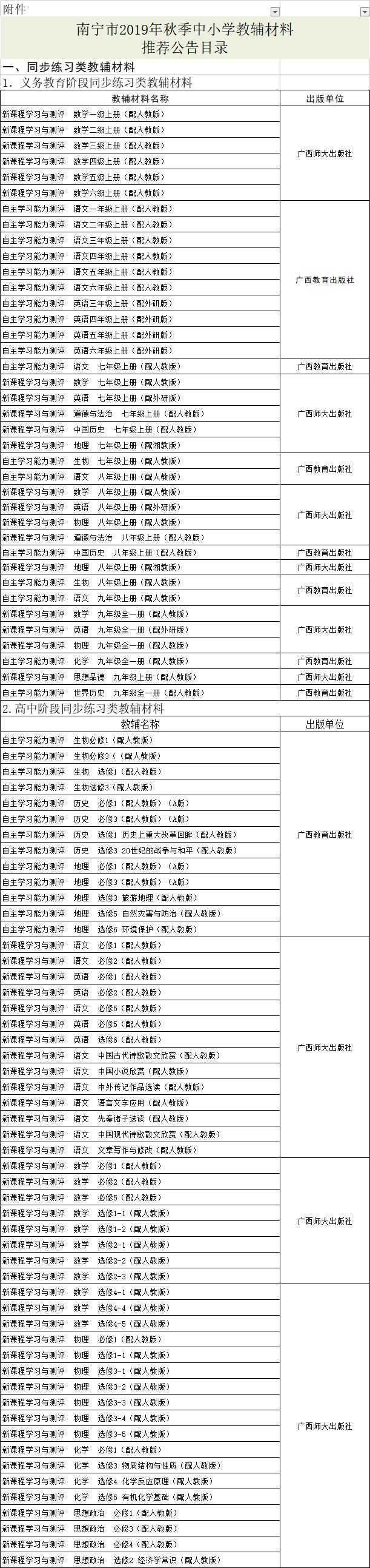 南宁市教育局发布《南宁市2019年秋季 中小学教辅材料推荐公告目录的通知》。