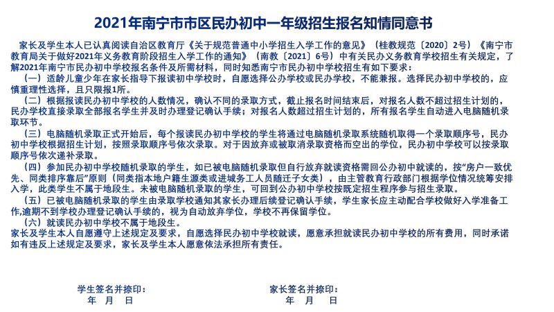 网上报名不需要额外准备材料,只需要南宁市城区小学学籍信息表(由就读小学在学籍系统中打印后,与家长签名的信息确认表、知情同意书等作为报名材料留存)。