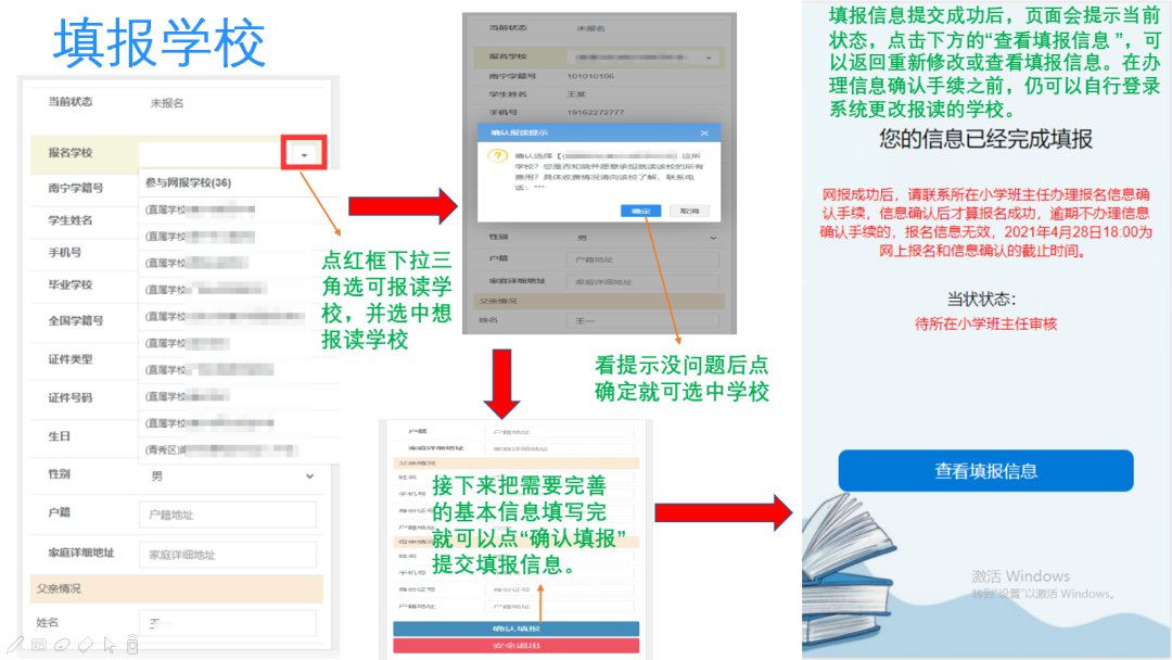 注:报名过程,仅需家长到校报名,学生可以不用到校。