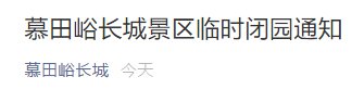 根据最新气象预报,预计7月2日夜间至3日中午,本市将出现入汛以来最明显降雨过程,总体雨量中雨,局地暴雨,并伴有雷暴、大风。为保障游客安全,根据上级指示要求,慕田峪长城景区7月3日上午暂时闭园,景区关闭期间停止对外售票,不接待任何游客,敬请广大游客朋友谅解。