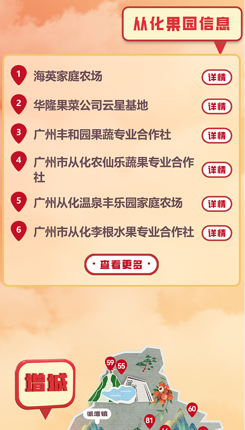 从化、增城、白云、黄埔、南沙和花都6个区共100个荔枝园均在图中,只要按图搜“园”,就可以get到新鲜美味的荔枝。