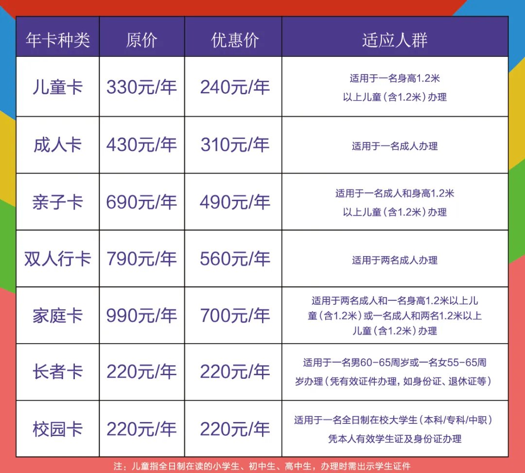 3.年卡优惠:此次年卡活动享受景区正价年卡(除校园卡、长者卡外)“7+1”优惠——原价7折+10元
