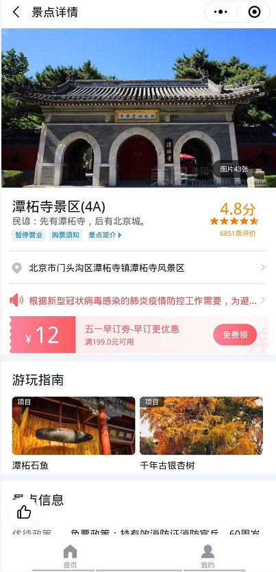 2、搜索“潭柘寺”进入潭柘寺购票页面(景区4月27日恢复开放,购票时间根据系统提示)