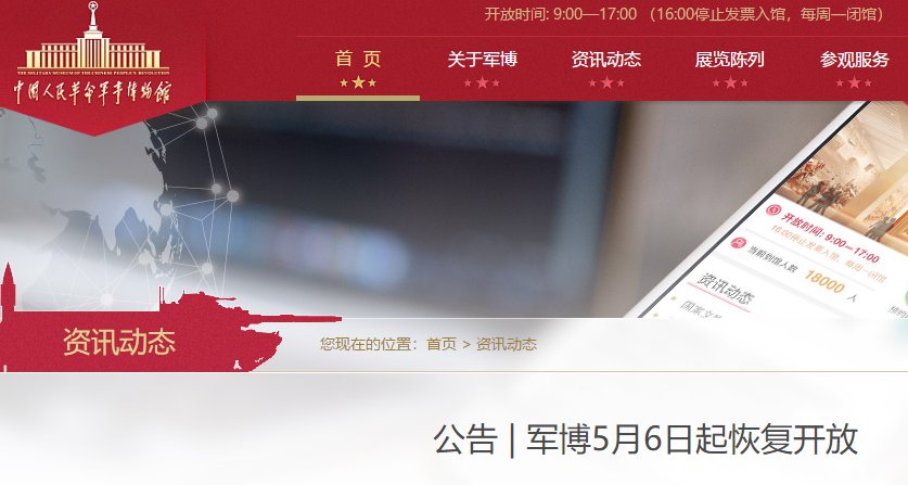 5月6日起中国人民革命军事博物馆恢复开放公告