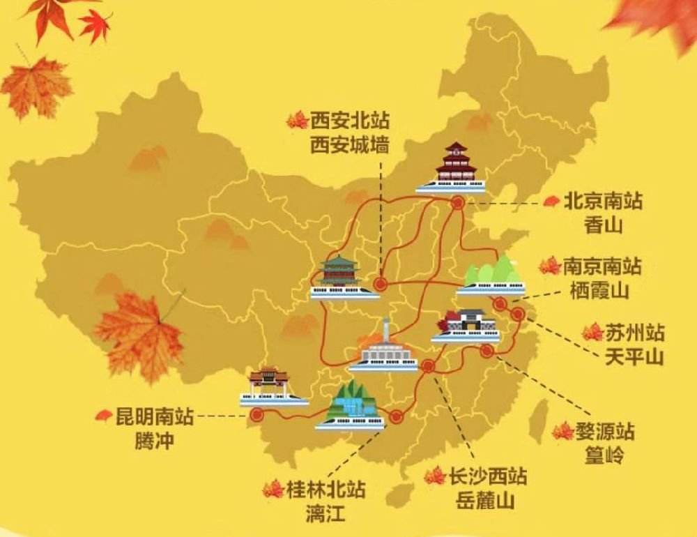 国内高铁3小时赏秋指南,总有一处适合你 。
