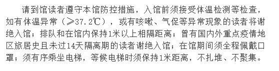 北京市通州区图书馆将全力落实防控措施,保障开放服务的安全、有序,也期待您和我们一起做好防控工作,遵守规定,文明借阅,感谢您的理解和支持!