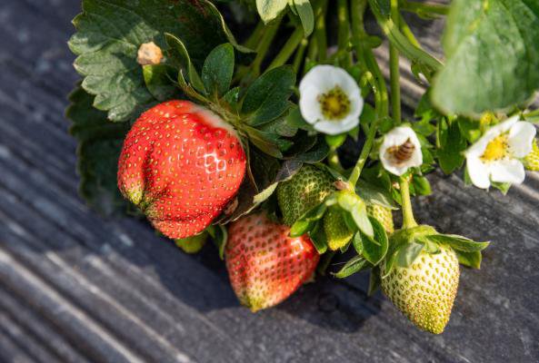 走进四季蔬果园的草莓大棚,浓郁的果香味扑鼻而来。园内草莓大棚总种植面积超过1500平方米,主栽品种为“红颜”。