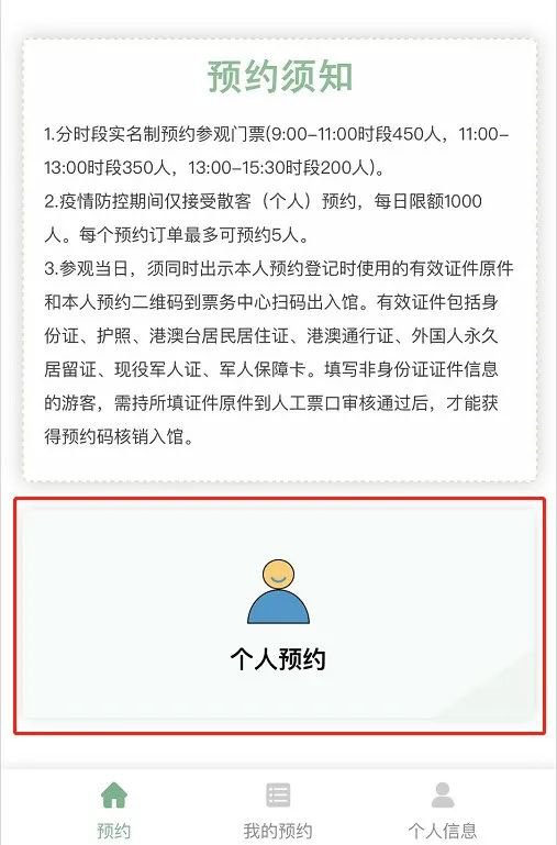 1、疫情防控期间仅接受散客(个人)预约,每日限额1000人。每个预约订单最多可预约5人。