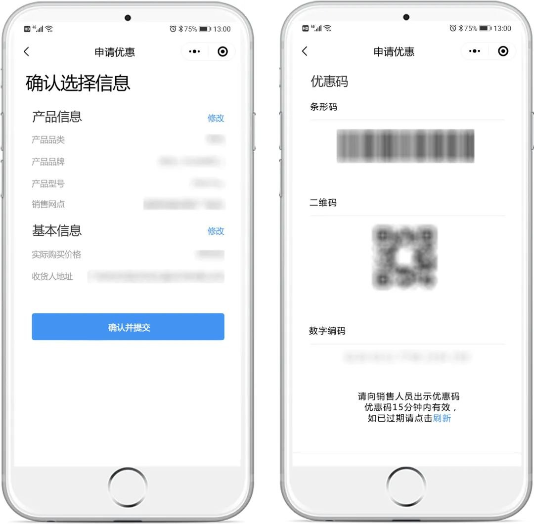 确认信息无误后生成优惠码,向销售网点出示优惠码。