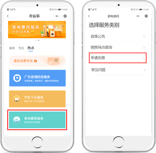 微信登录“粤省事”小程序,进入“家电惠民服务”专区。