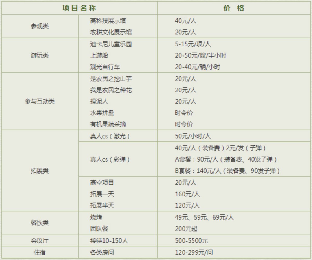 四、农博园游览价目表