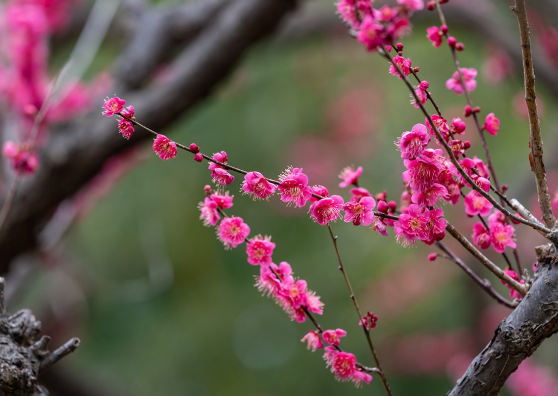 暖阳春日醉,忽见美人梅,香气粉云动,艳娇花雨飞。春已如期到来,所到之处,满树繁花竞相开放。綦城的风在不知不觉中,吹来了绿,也吹开了花。