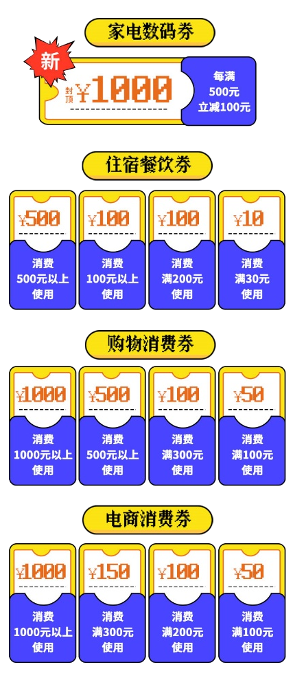 本轮新增家电数码券,每满500元立减100元,封顶1000元!