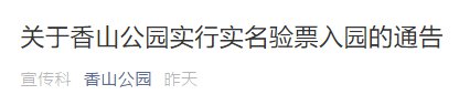 关于香山公园实行实名验票入园的通告