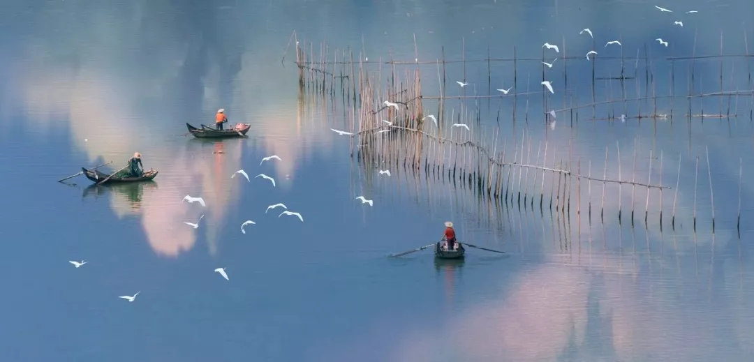春日是辛勤的季节,林间,万物开始苏醒,路边,野花朵朵开。天气晴好的时候,渔民们会驾着小舟,出发寻鱼。