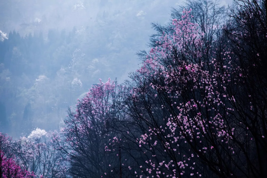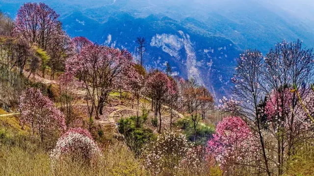 虽说辛夷花的名气,不比樱花、桃花、油菜花,但是辛夷花所形成的粉色花海,确实是灿若云霞,将药王谷点缀成了一片粉色的梦幻世界,让人过目难忘,不愿离去。