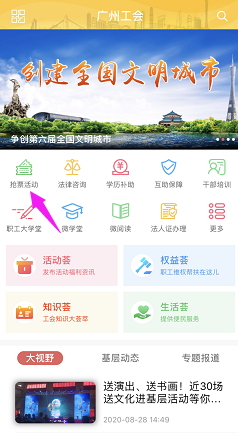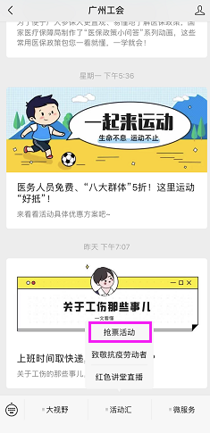 各位小伙伴实名认证后,点击自定义菜单【活动汇】选择【抢票活动】,即可进入【广州市总工会服务职工精神文化产品抢票活动】。