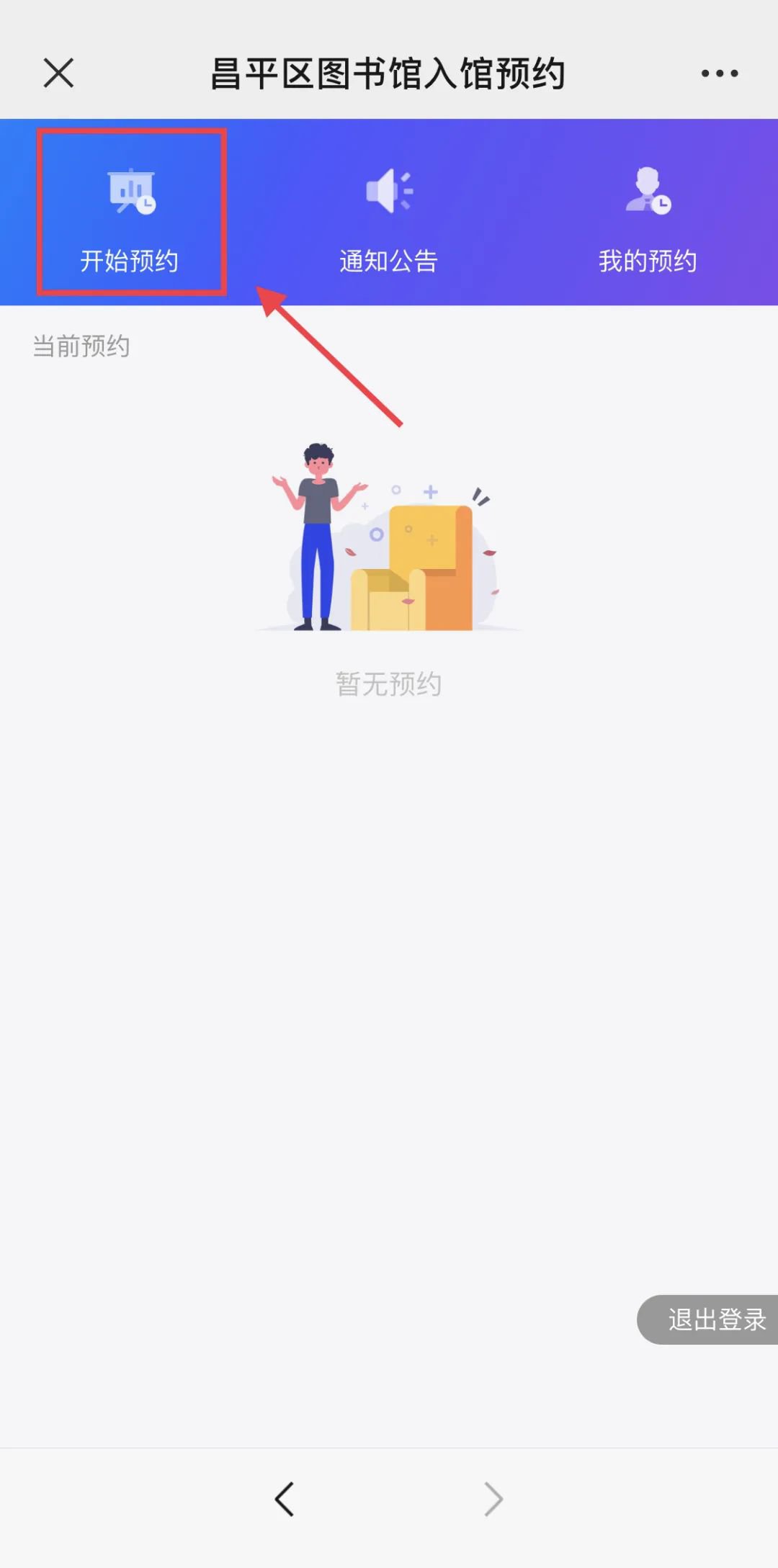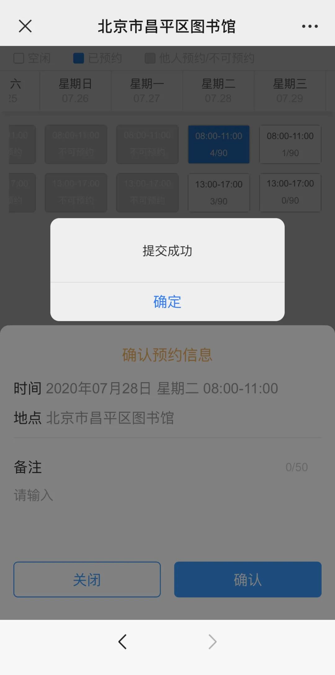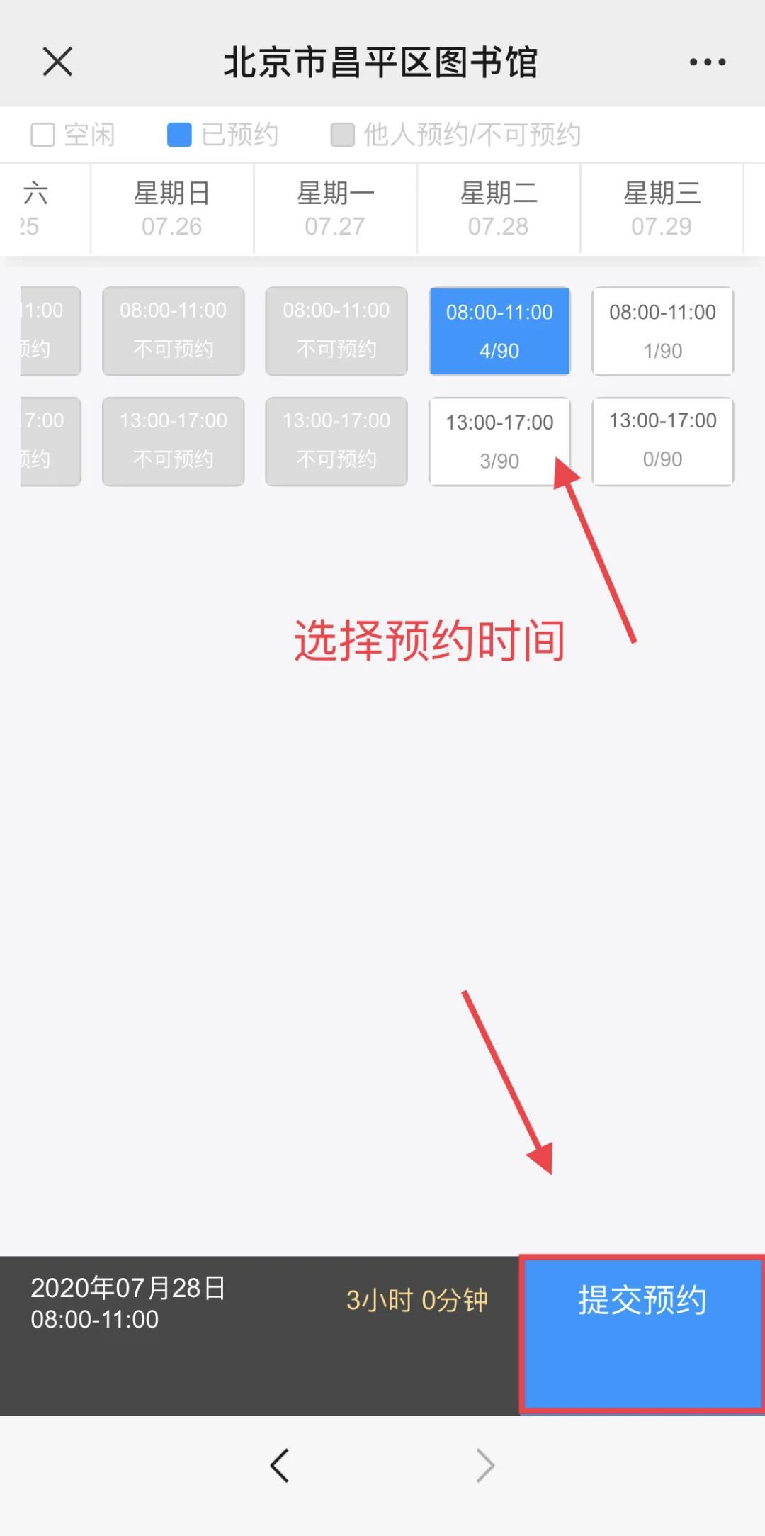 点击“开始预约”,选择预约到馆时间,提交预约后,即可快速完成预约入馆申请。
