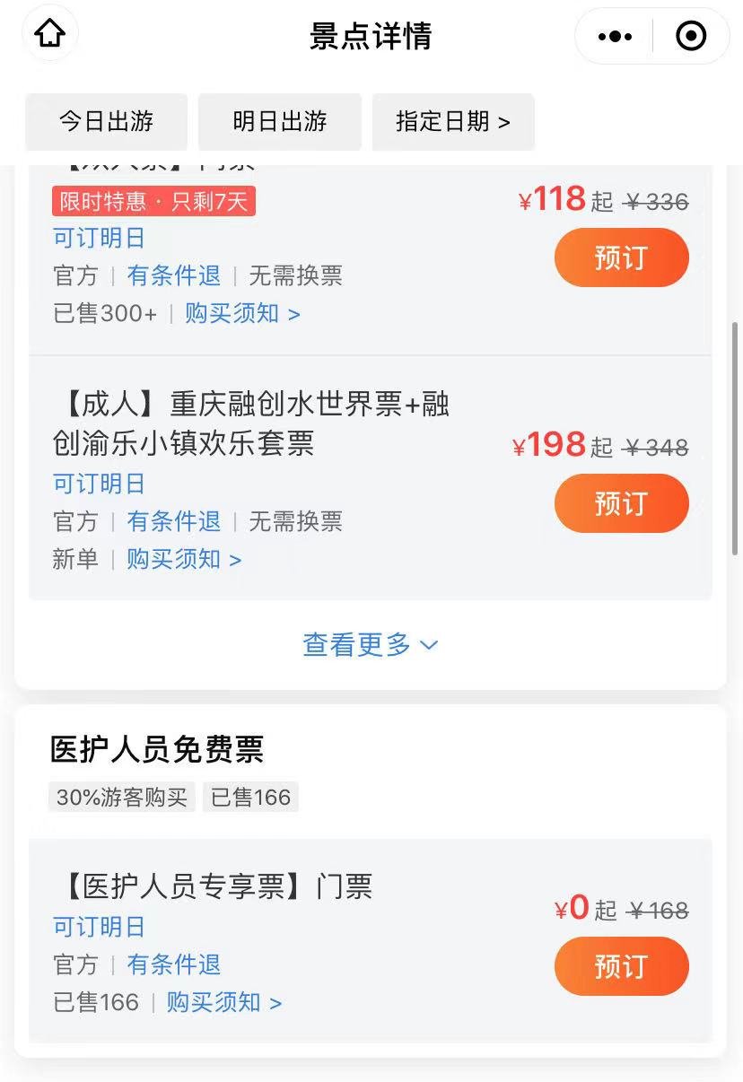 预订说明:每人限购一张,需提前一天网上实名预订,享受医护免费的游客不能再携带其他免费客群。