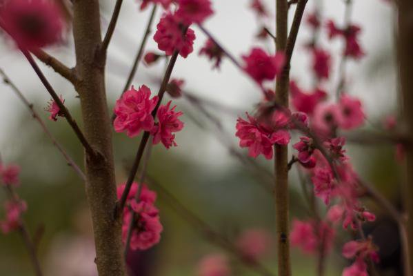 桃是我国传统民俗喜爱的植物。除夕,古时人们用两块桃木板挂在门旁,以作压邪;五代起在桃符上写联语,成为对联,一直传承至今为民间过年习俗。“桃之夭夭,灼灼其华”,这一句古诗里则是赞美和祝贺新娘的,可见人们对桃花的喜爱。