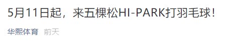 5月11日起北京五棵松HI-PARK开放羽毛球场地