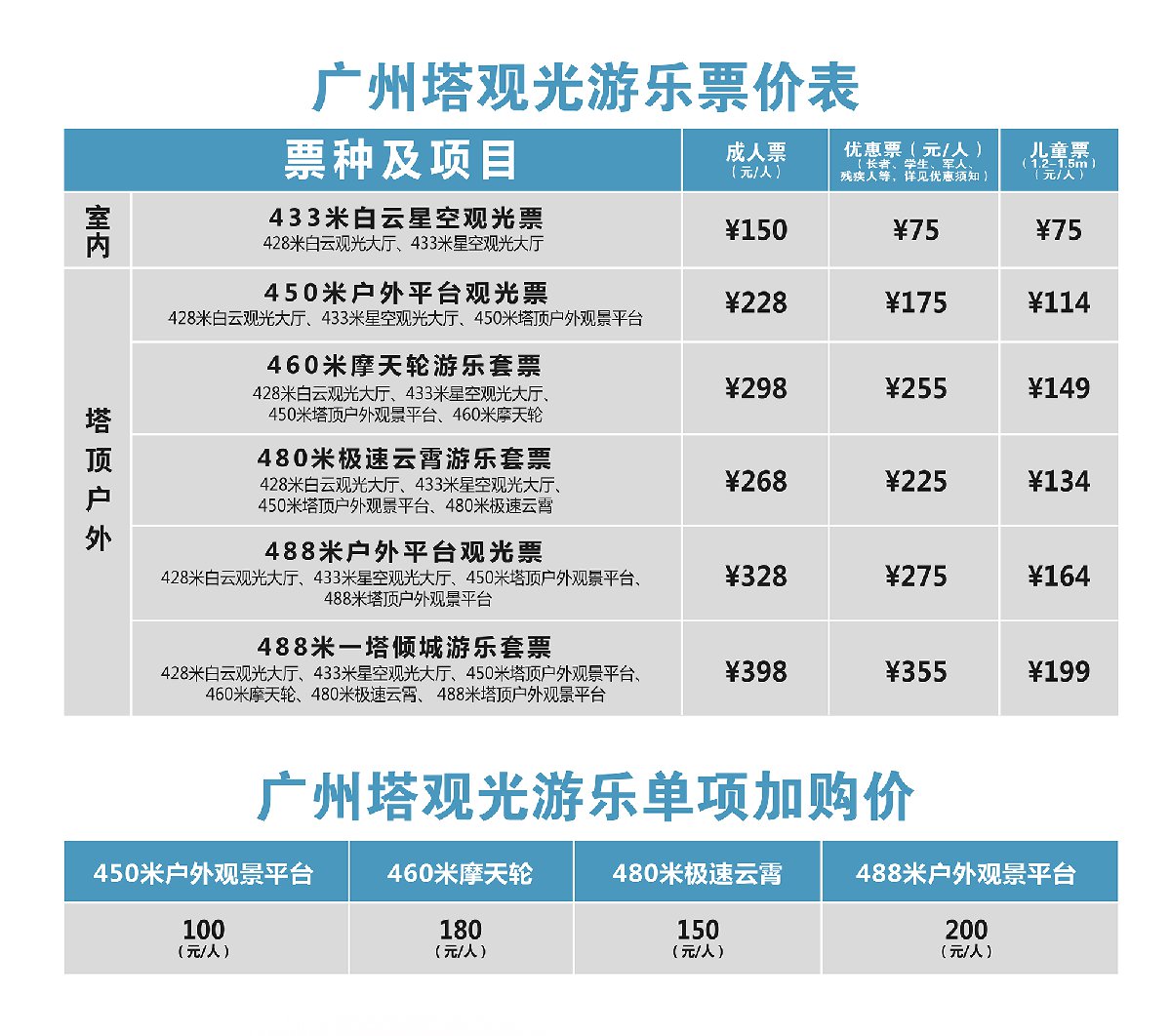 488米户外平台观光票:包含107层白云观光大厅、108层星空观光大厅、450米户外观景平台488米户外观景平台,该套票是纯观光票,适合只想登塔拍摄的小伙伴。