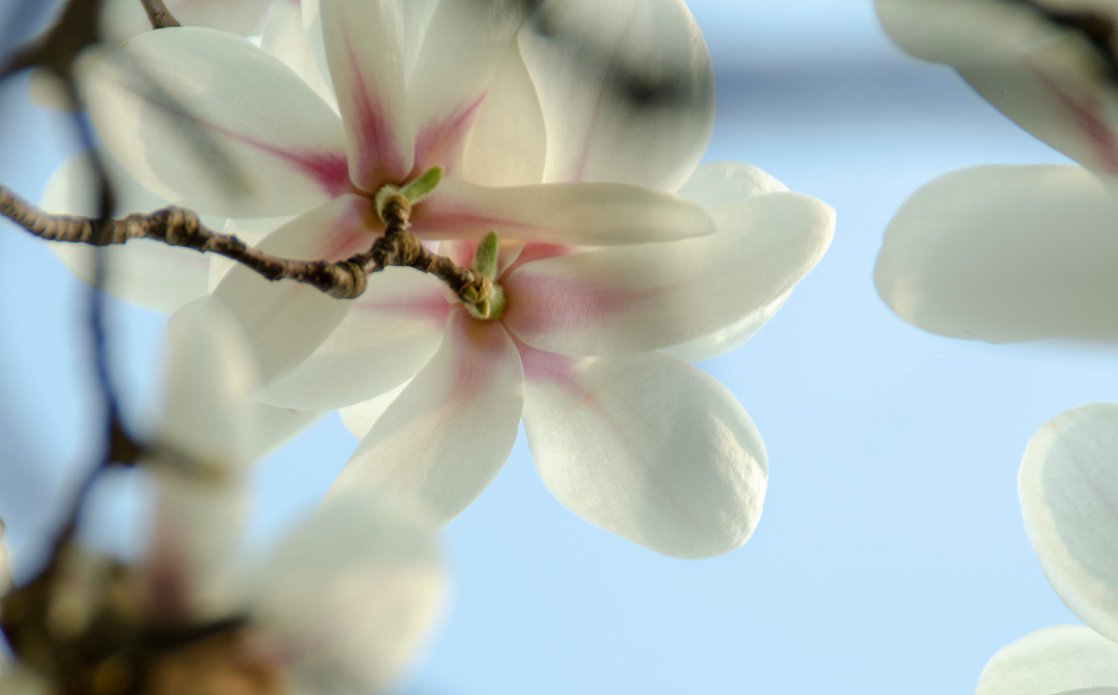春天到来,洁白的玉兰花正在春风的吹拂下倾情绽放。,玉兰品种繁多,花朵姿态万千,颜色也是多种多样,尤其是二乔玉兰更是别具一格的美丽,它的花瓣内面为奶白色,背面则为紫色,兼具了纯洁与高贵的双重气质。